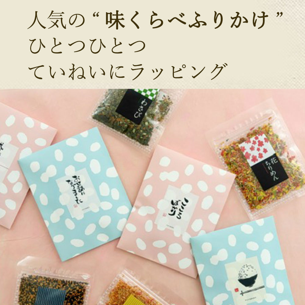 結婚式のプチギフトで購入させていただきました。写真に掲載ある通り可愛いパッケージで味もたくさん選べたので、買う前からテンション上がってました。味を4種類購入しましたが、きちんと判別できるように小さいシールが貼ってありとても助かりました。また梱包も丁寧で工場の方の気配りが感じられ嬉しかったです。 披露宴参加者からは見た目が可愛いとか美味しかったとか好評価でしたので、大満足でした* 関東在住でこちらのふりかけを食べたことなかったのですが、とても美味しかったので今後も定期的に購入させて頂こうと思います。 本当にありがとうございました(’’*)