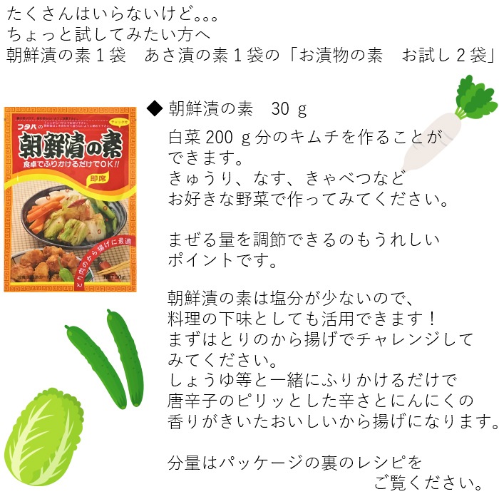 ●あさ漬の素 簡単お手軽においしいあさ漬を作ることができます。