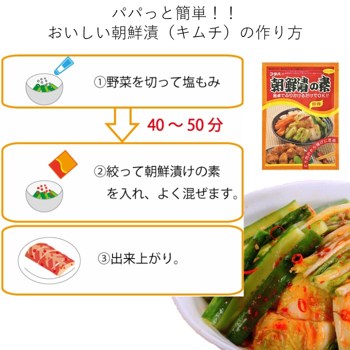 塩もみした野菜(もしくは白菜漬け)にもみ込むだけで簡単に朝鮮漬けが出来上がります。