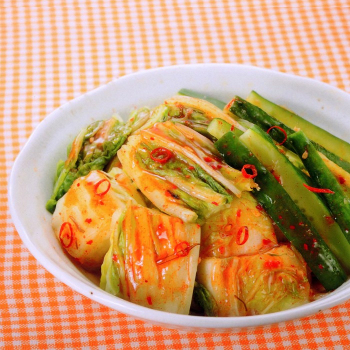 塩もみした野菜にかけるだけで簡単に朝鮮漬けを作る事ができます。