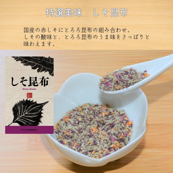 とろろ昆布のうまみにしその酸味が加わった、あっさり味のふりかけです。